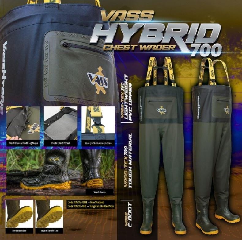 Introducing the Vass Hybrid 700 Chest Waders – a perfect fusion of strength and flexibility, designed for serious anglers. These waders combine the ultra-durable Vass-Tex 700 material on the lower half for outstanding toughness, with the lighter Vass-Tex 350 fabric on the upper section to reduce weight and enhance mobility. The result? A high-performance wader that offers durability and comfort without compromise.